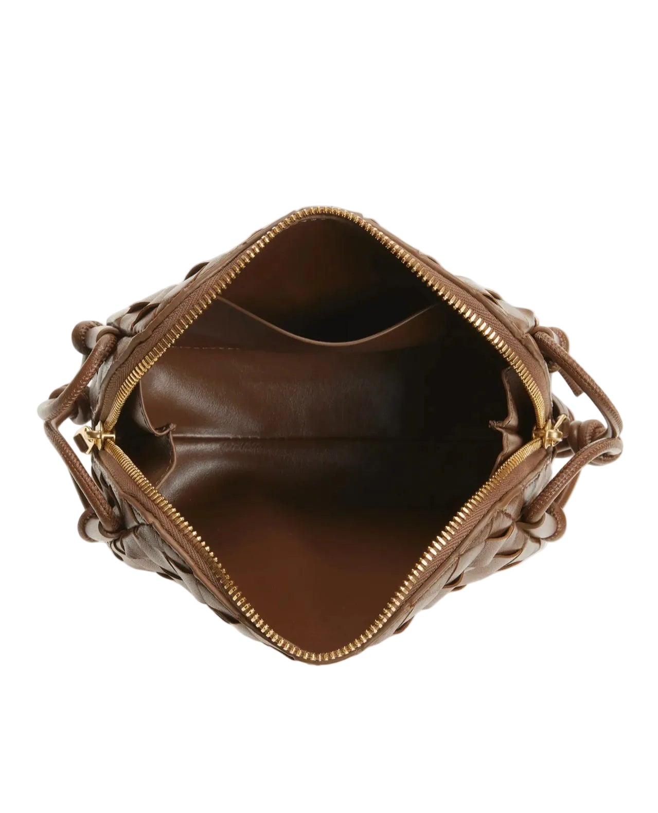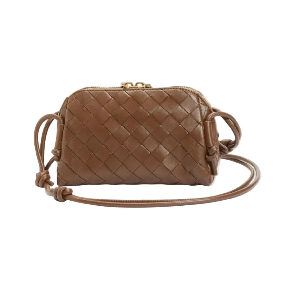 Stijlvolle Woven Caramel Shoulder Bag van 100% leer met ritssluiting en verstelbare schouderband. Tijdloos en perfect voor elke dag.